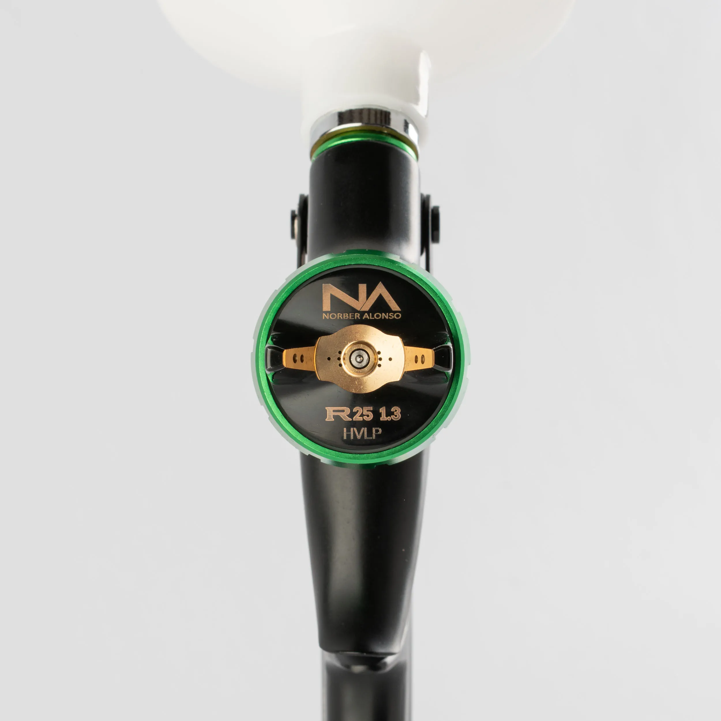 Pistola R25 generación hvlp para aplicación de colores metalizados agua o base solvente. INCLUYE DEPOSITO DE GRAVEDAD.